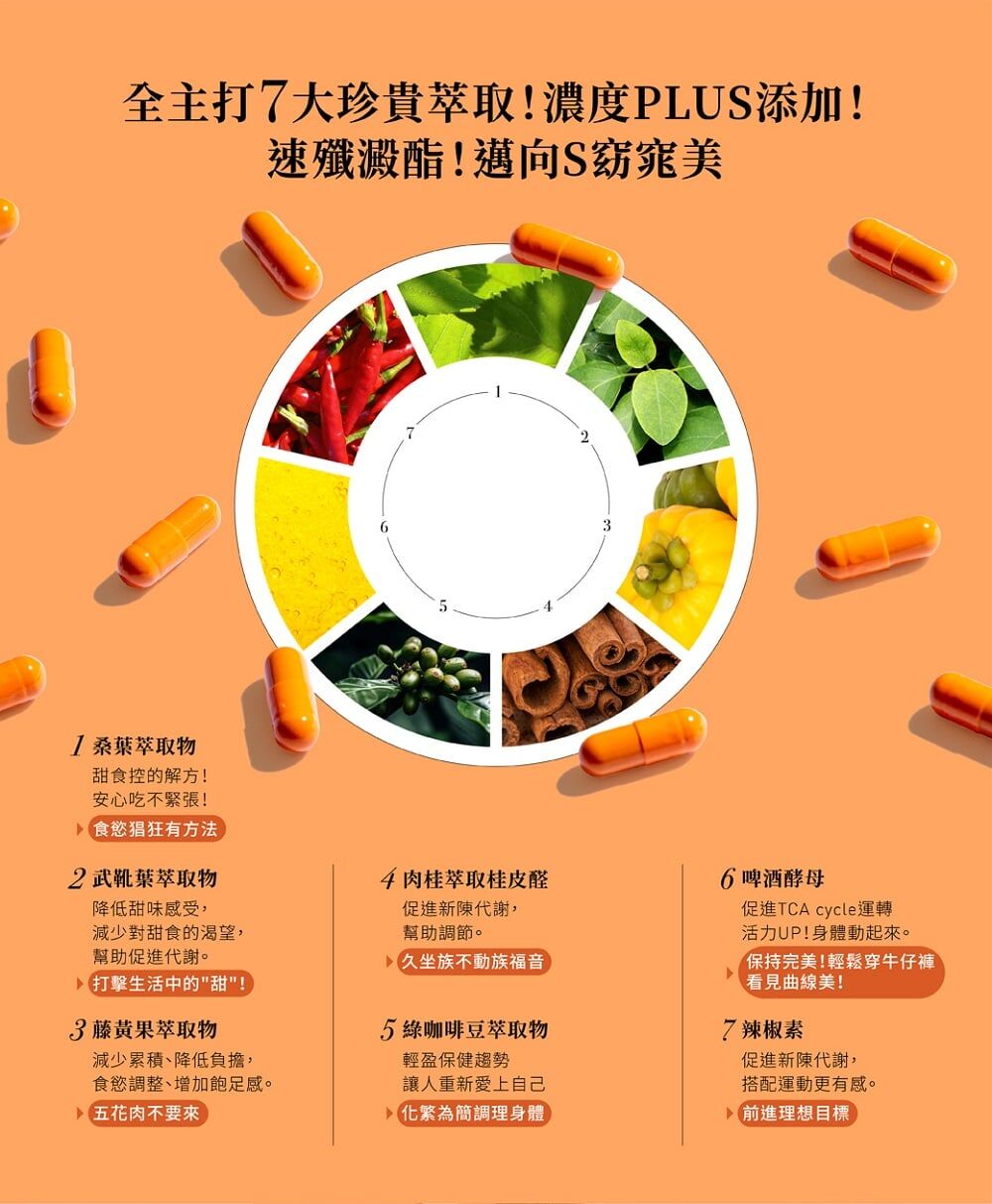 產品特色:別人的瘦身主元素,我們七大成份一次給滿: